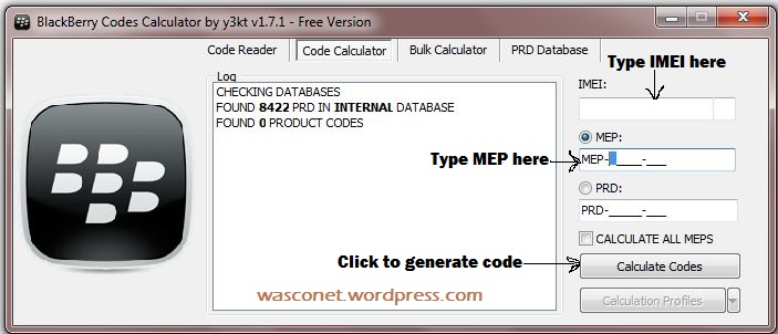 NOTE: for this application to generate your IMEI and MEP you need to have Blackberry Desktop Manager installed on the computer